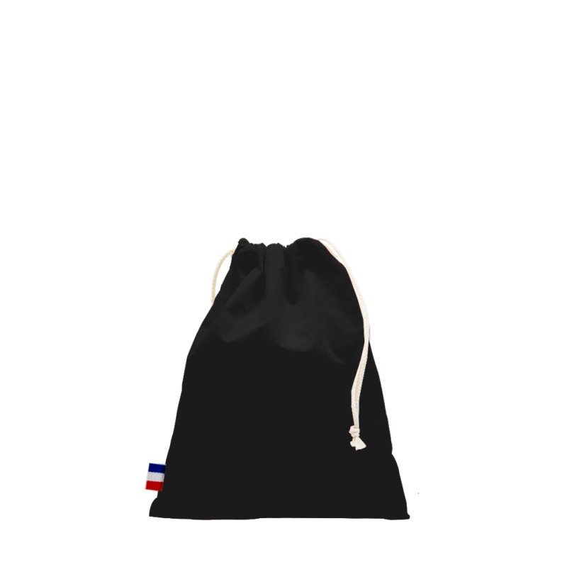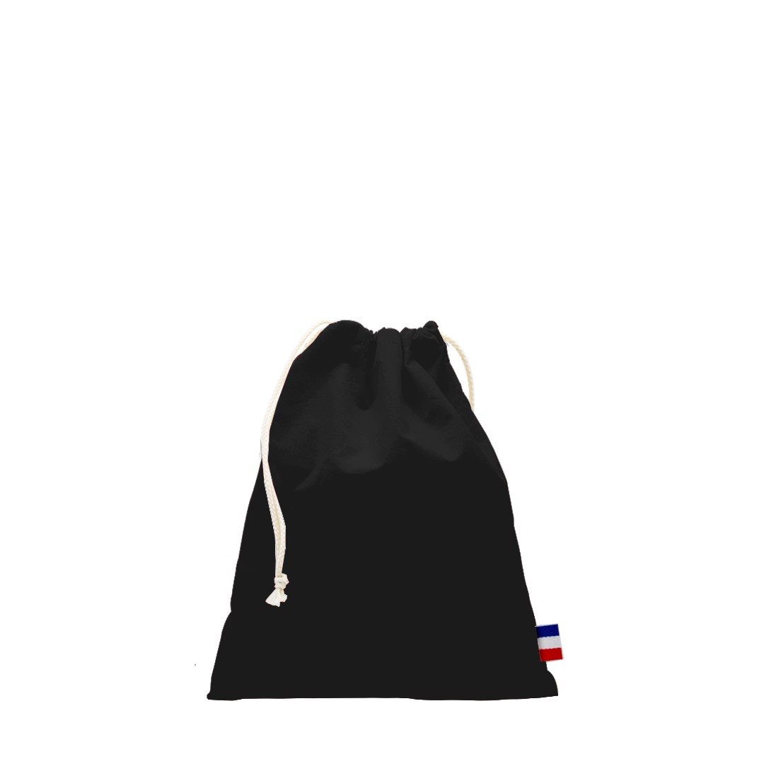 Pochon Valentin L, dimensions 20x25cm, Confection France (atelier BF ou ESS), en 100% coton - tissé France, avec 2 cordons de 3,5mm d'épaisseur. Étiquette intérieure de composition avec logo Bonjour François, galon BBR sur le coté du pochon. 250 pièces par carton. Toile 150g/m².