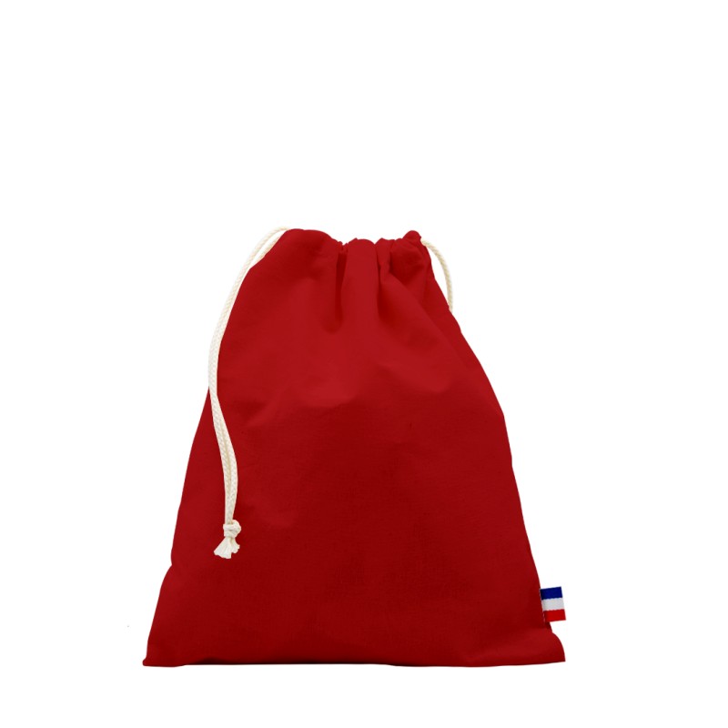 Pochon Valentin XL, dimensions 25x30cm, Confection France (atelier BF ou ESS), en 100% coton - tissé France, avec 2 cordons de 3,5mm d'épaisseur. Étiquette intérieure de composition avec logo Bonjour François, galon BBR sur le coté du pochon. 250 pièces par carton. Toile 150g/m².