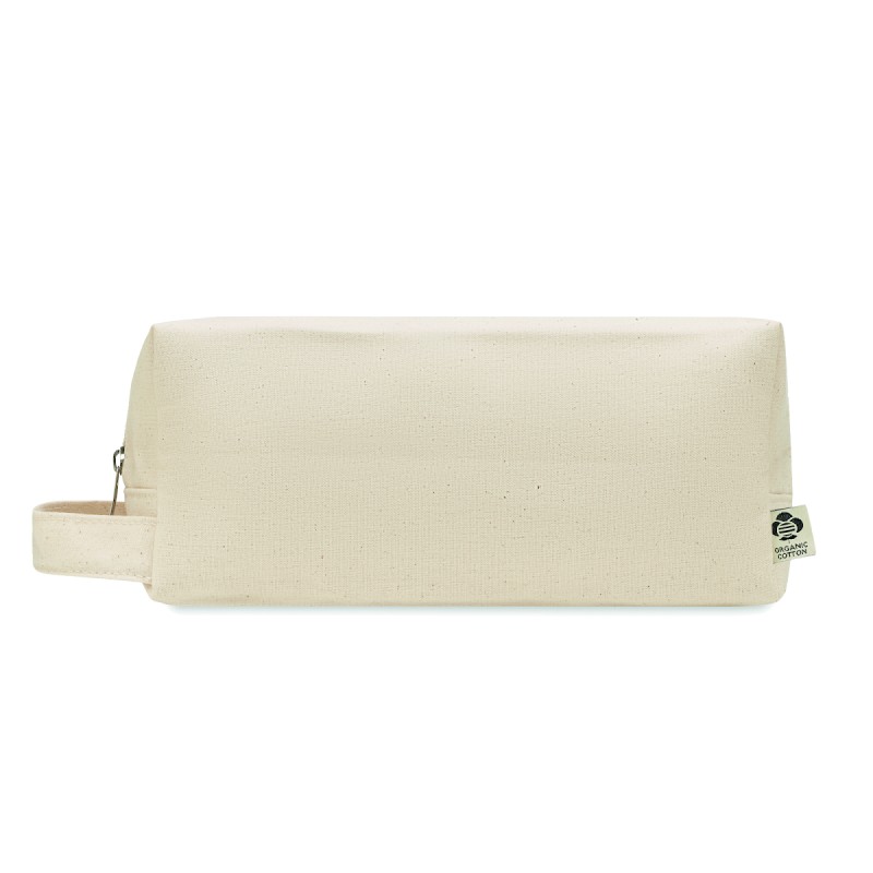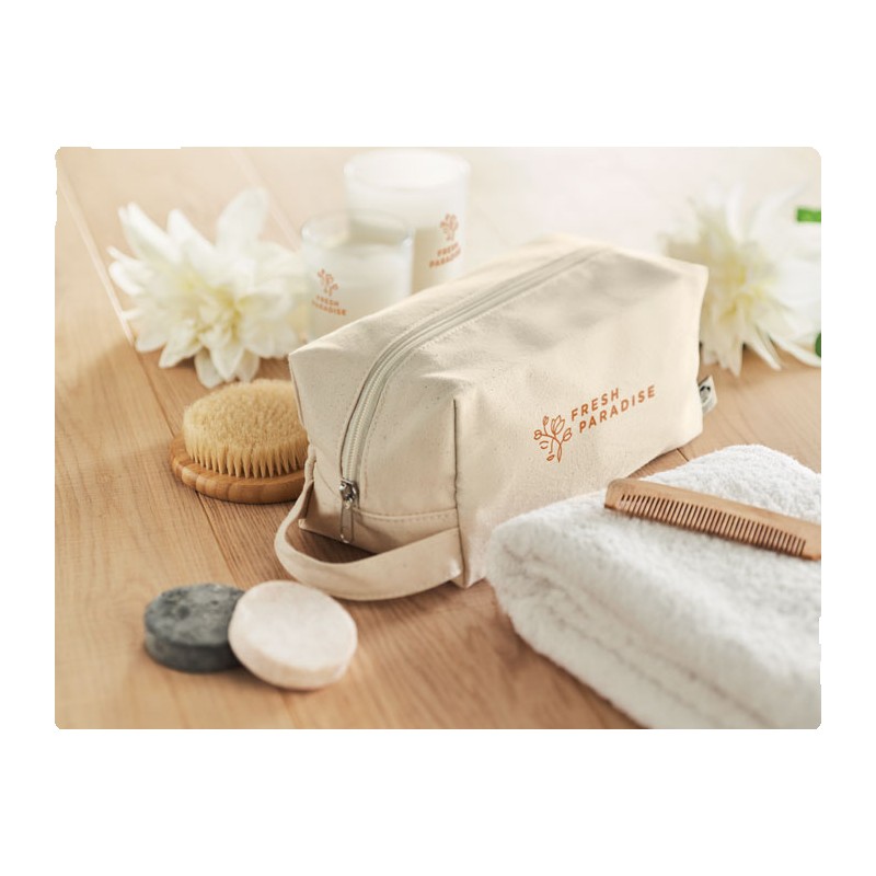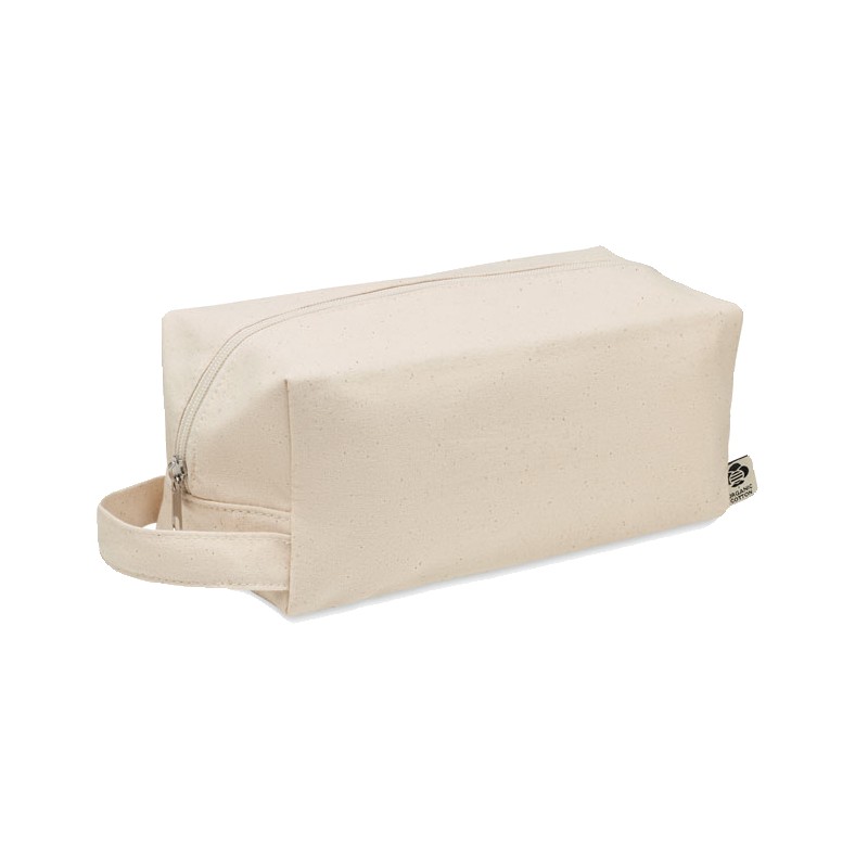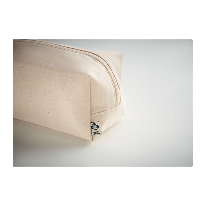 Sac à cosmétiques avec une fermeture éclair en toile biologique 220 gr/m². La doublure est en coton biologique de 140 gr/m².