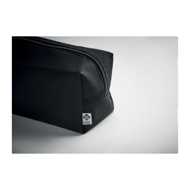 Sac à cosmétiques avec une fermeture éclair en toile biologique 220 gr/m². La doublure est en coton biologique de 140 gr/m².