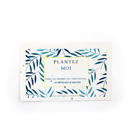 Carte de visite papier graines 85x55mm recto. Papier graines 200g, mélange de fleurs. À planter directement en terre pour permettre aux semences de pousser !