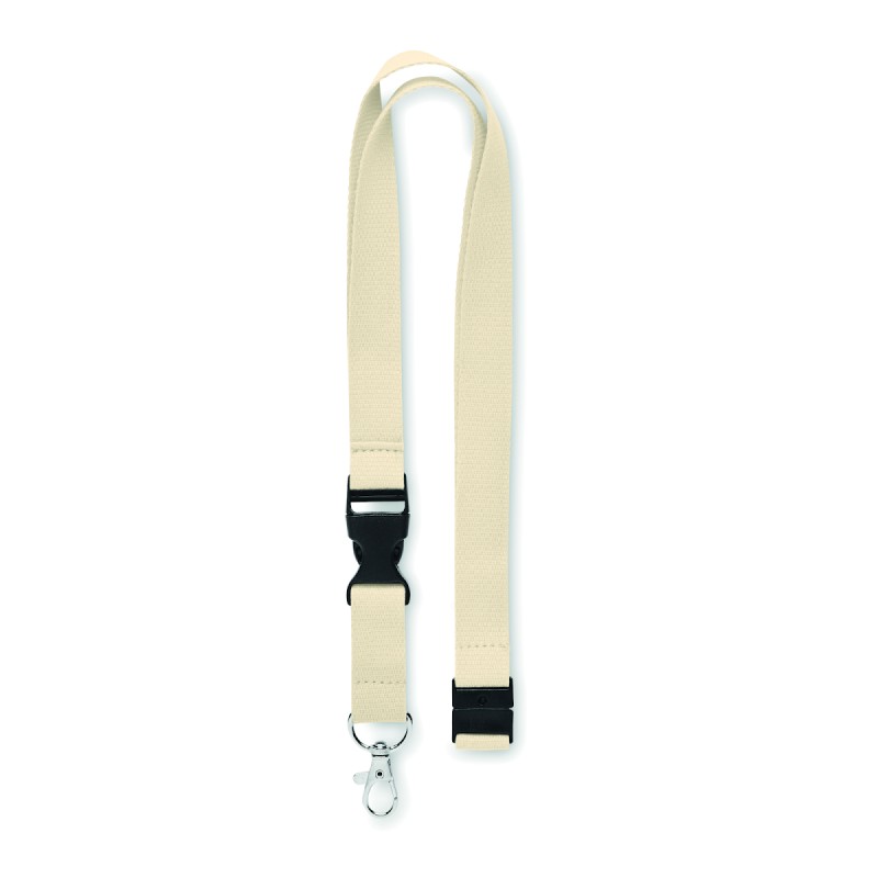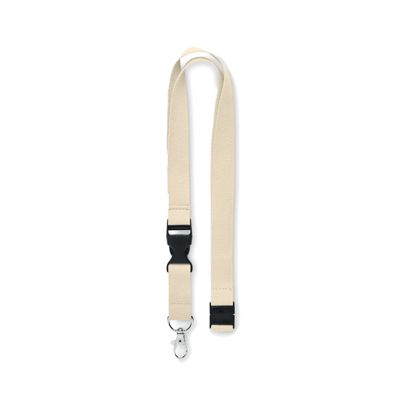 Lanyard en coton avec crochet en métal, boucle détachable et fermeture de sécurité. Largeur 20 mm.