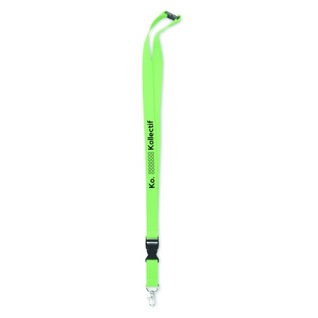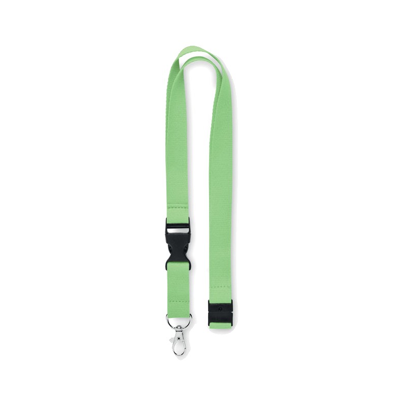 Lanyard en coton avec crochet en métal, boucle détachable et fermeture de sécurité. Largeur 20 mm.