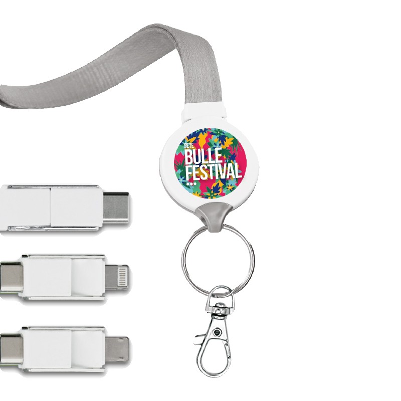 CABLE DE CHARGE RAPIDE ET TRANSFERT RETRACTABLE A RESSORT 6 EN 1