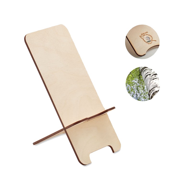 Support téléphone bois de pin avec plante