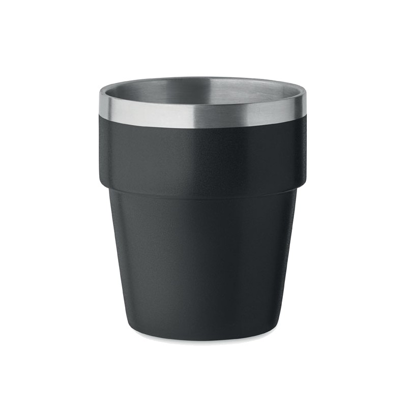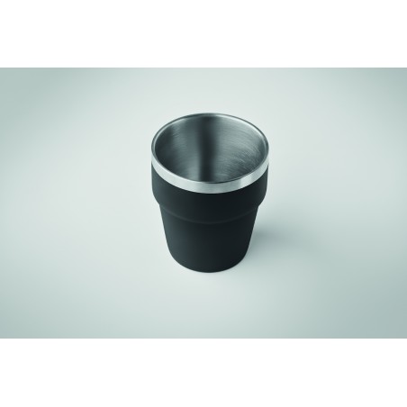 Gobelet à double paroi en acier inoxydable recyclé (90 % d'acier inoxydable recyclé et 10 % d'acier inoxydable) empilable. Capacité : 250 ml.