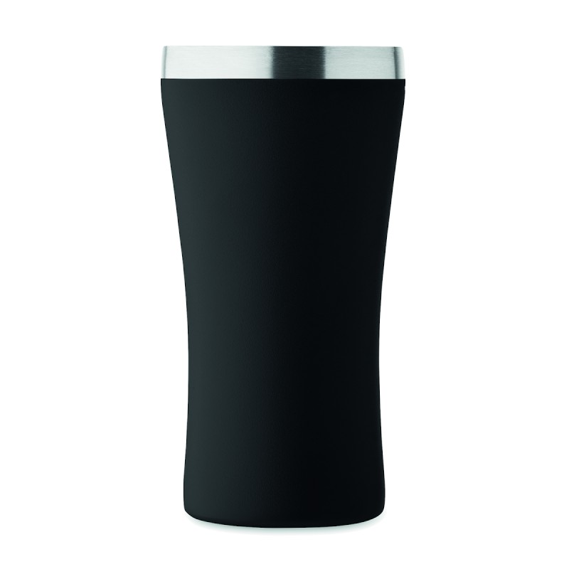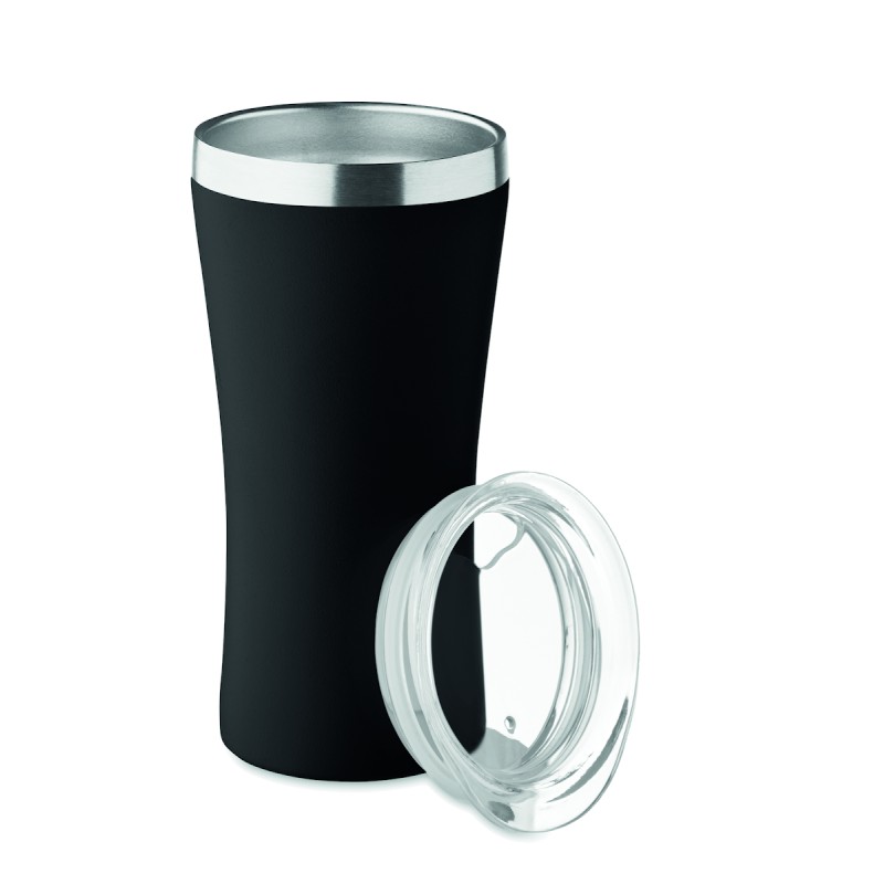 Petit gobelet à double paroi isolée sous vide en acier inoxydable recyclé (90 % d'acier inoxydable recyclé et 10 % d'acier inoxydable) avec couvercle percé en PP transparent. Capacité : 160 ml.