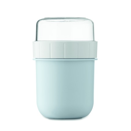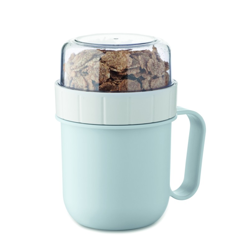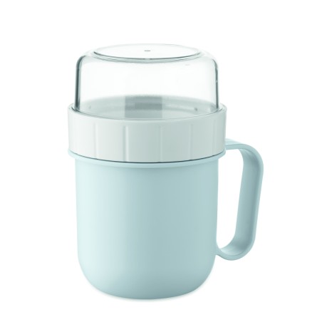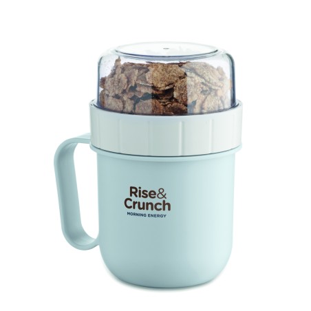 Mug et coupelle pour petit-déjeuner ou brunch à emporter en PP et couvercle en PS. Composé de 2 récipients individuels pour garder les ingrédients séparés. Capacité : 450 ml et 160 ml. Anti fuite.