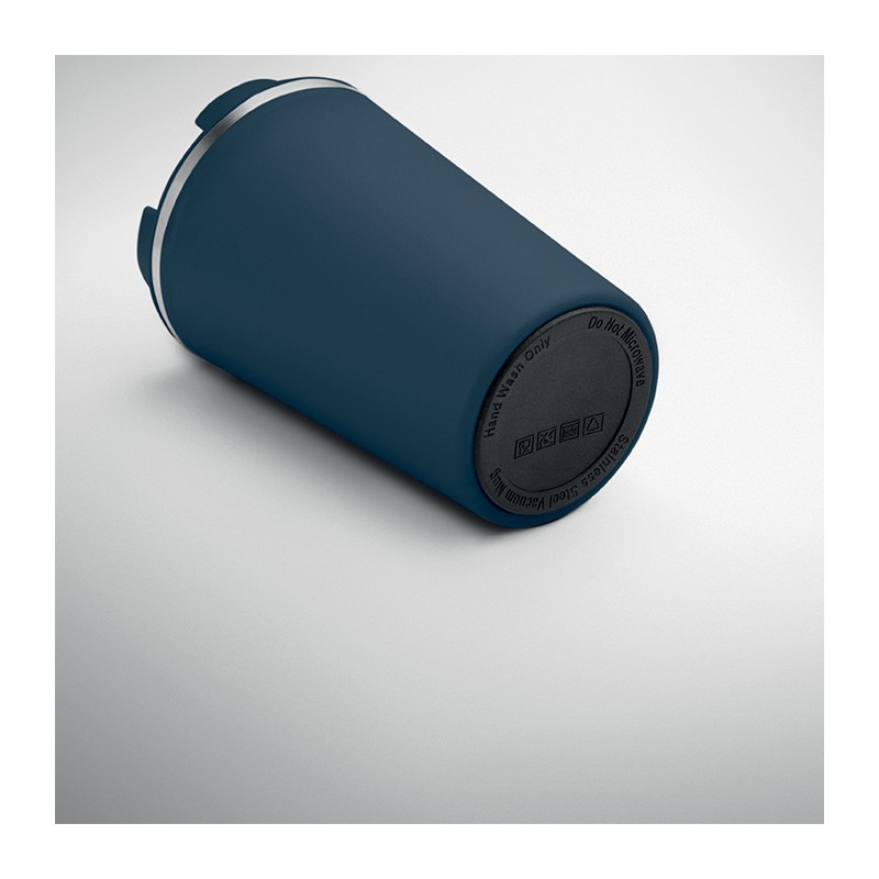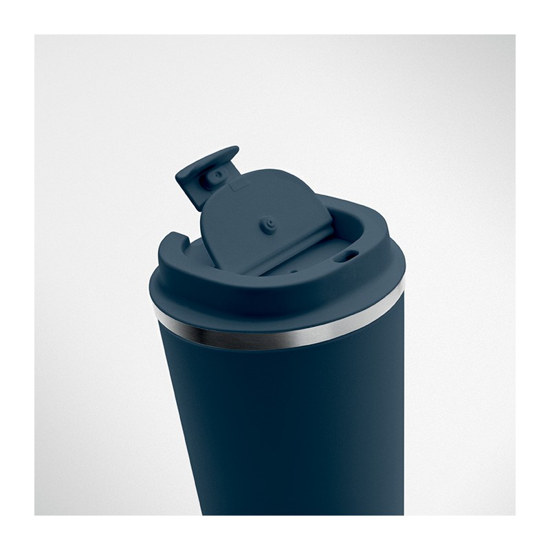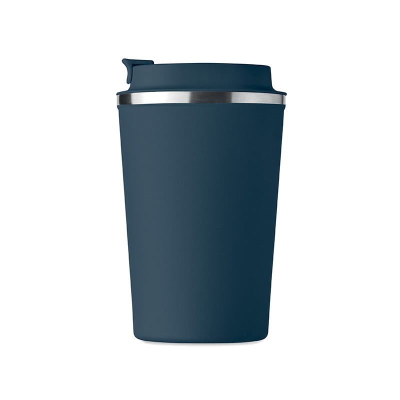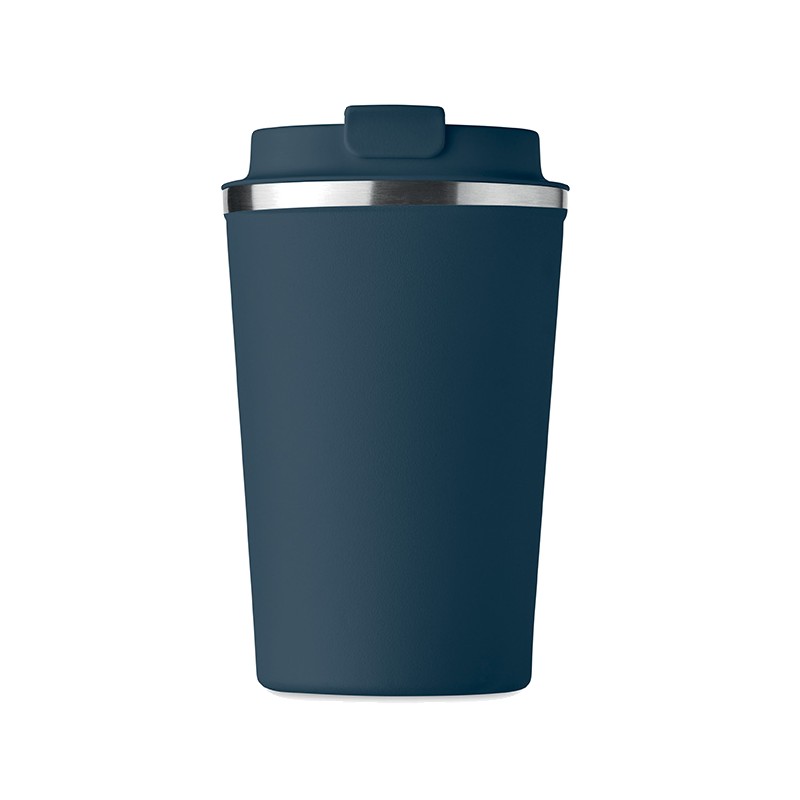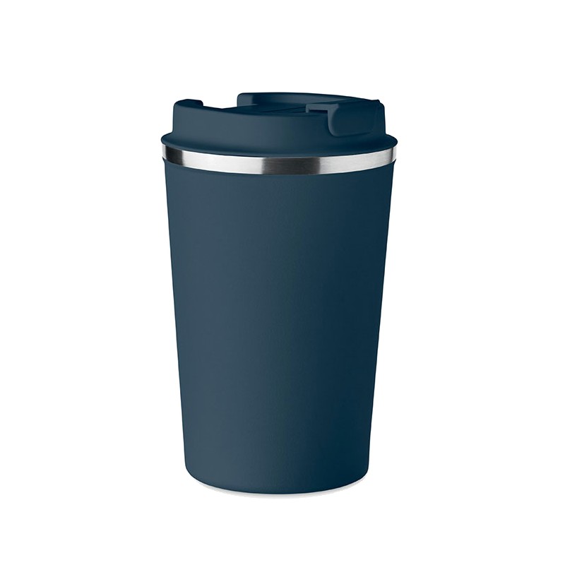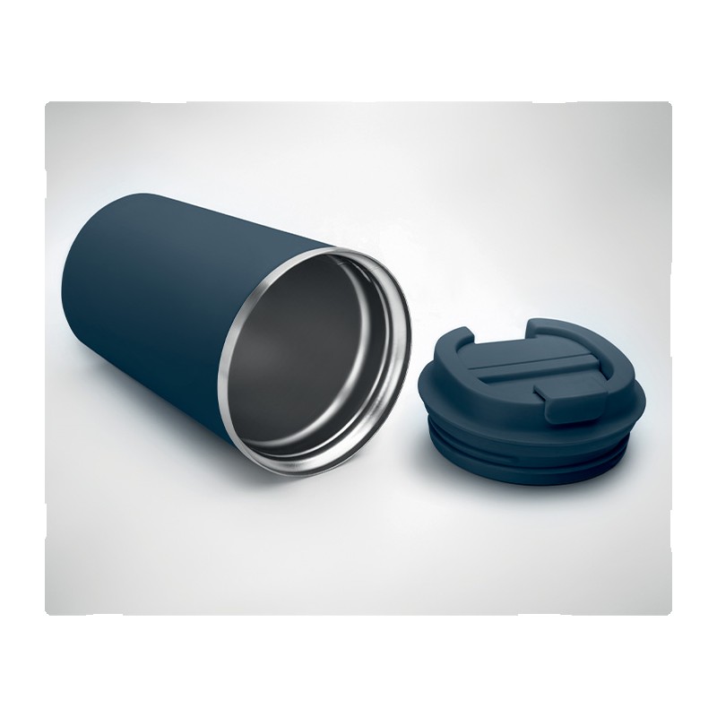 Gobelet en acier inoxydable à double paroi avec couvercle en PP. Contenance 350 ml. Sans fuite.