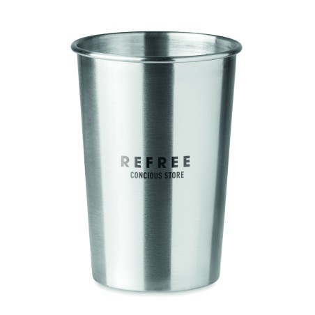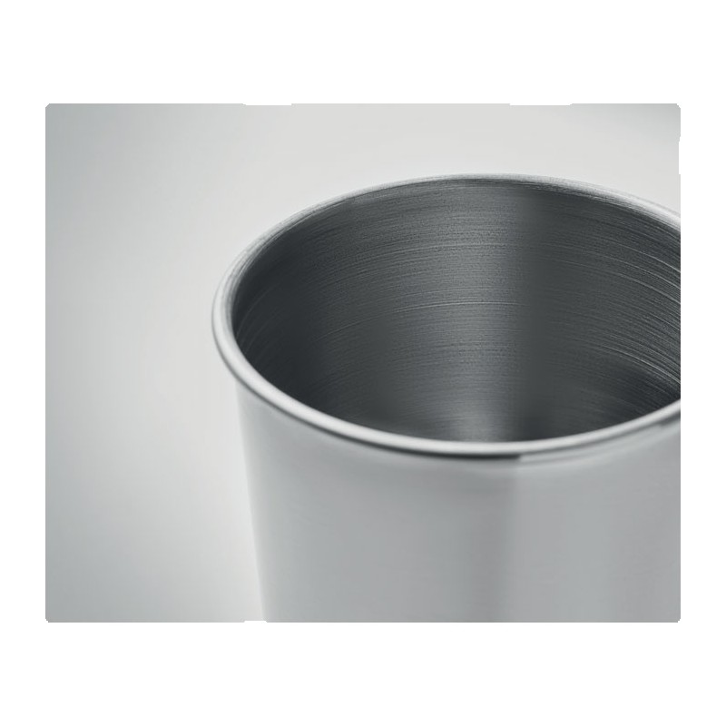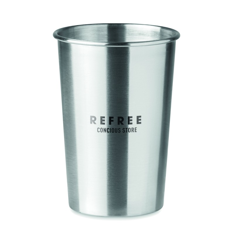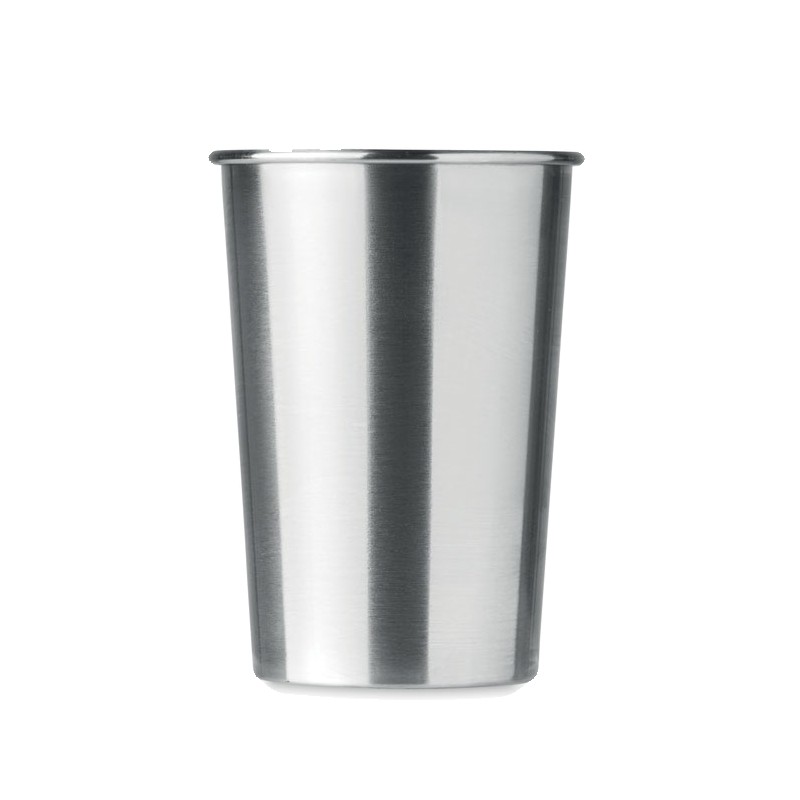 Gobelet en acier inoxydable. Capacité : 350 ml. Comme il s'agit d'un gobelet à paroi simple, un transfert de chaleur peut encore se produire.