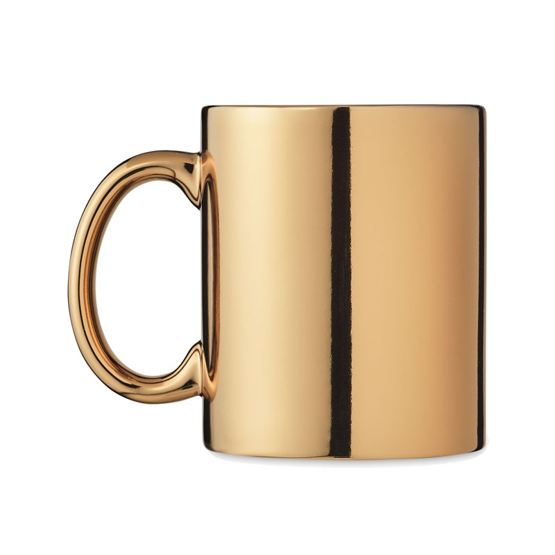 Mug cylindrique classique en céramique avec finition métallique. Capacité : 300 ml.