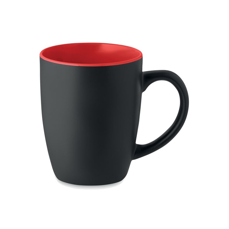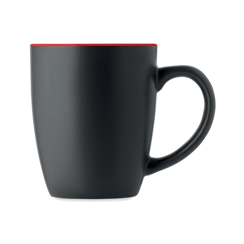 Mug en céramique noire mate avec intérieur brillant. Capacité : 290 ml. Avec un revêtement spécial pour la gravure au laser