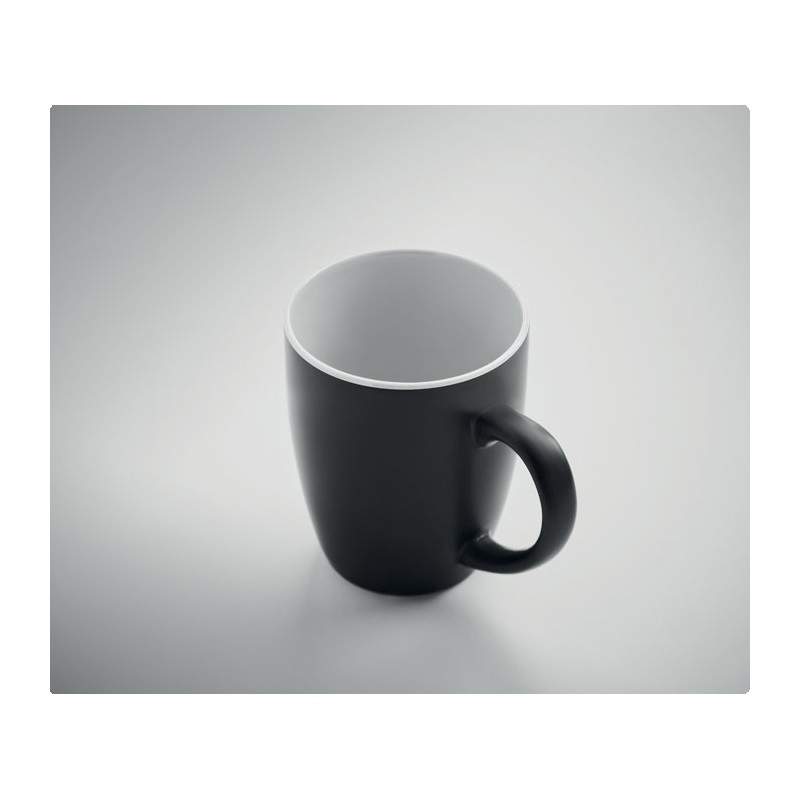 Mug en céramique noire mate avec intérieur brillant. Capacité : 290 ml. Avec un revêtement spécial pour la gravure au laser