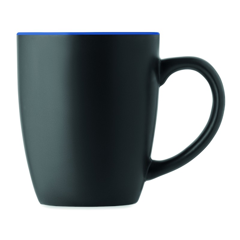 Mug en céramique noire mate avec intérieur brillant. Capacité : 290 ml. Avec un revêtement spécial pour la gravure au laser