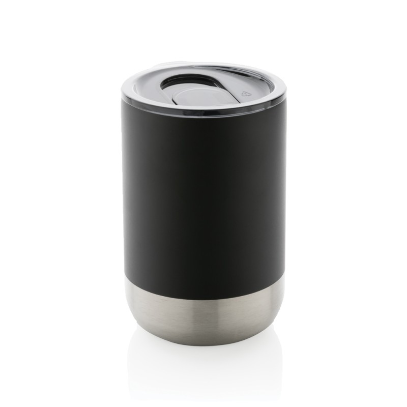 Mug 360ml double paroi fabriqué en acier inoxydable recyclé RCS (Recycled Claim Standard). Garde les boissons chaudes pendant 3 heures ou froides pendant 6 heures. Le couvercle avec fonction d'ouverture coulissante. La certification RCS garantit une chaîne d'approvisionnement entièrement certifiée pour les matériaux recyclés. Contenu recyclé total : 76% sur la base du poids total de l'article. Sans BPA. Emballage kraft certifié FSC® inclus.