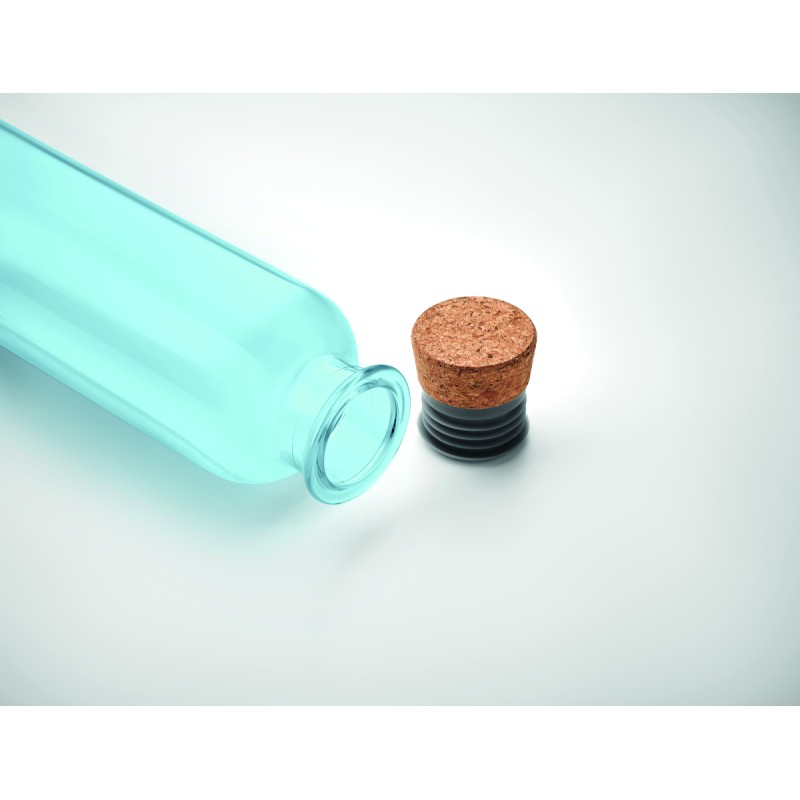 Bouteille en Tritan Renew™ avec bouchon en liège. Capacité : 500 ml. Ce produit est dérivé de 50% de déchets plastiques certifié ISCC mass balance.