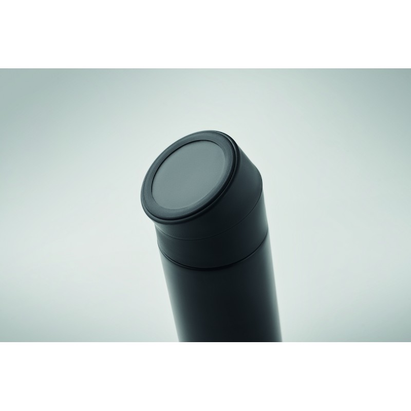 Bouteille isolante sous vide à double paroi en acier inoxydable recyclé (90 % d'acier inoxydable recyclé et 10 % d'acier inoxydable) avec couvercle en silicone antidérapant pour téléphone portable. Anti fuite. Capacité : 420 ml.