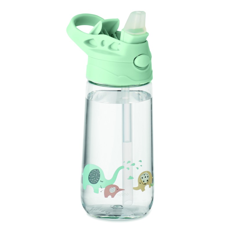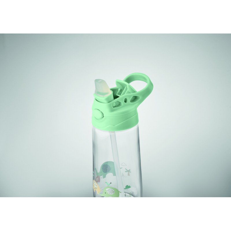 Bouteille pour enfant en tritan avec couvercle à paille intégré. Anti fuite. Capacité : 450 ml.