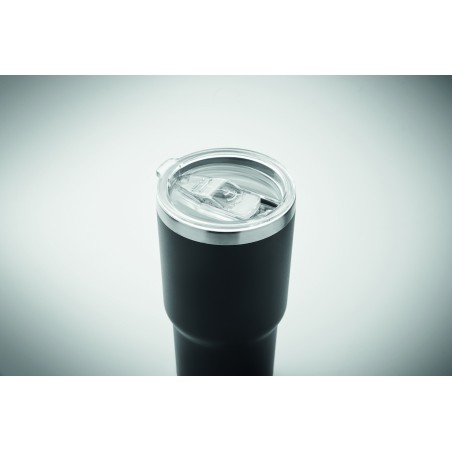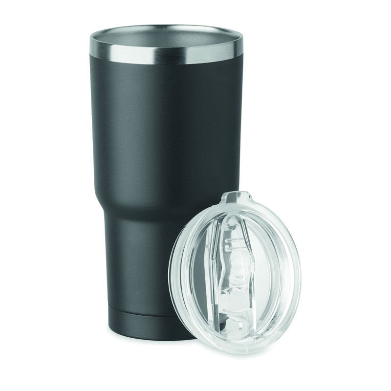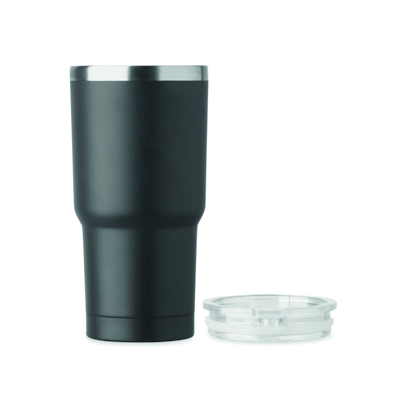 Gobelet à double paroi en acier inoxydable recyclé (90 % d'acier inoxydable recyclé et 10 % d'acier inoxydable). Couvercle avec ouverture pour boire. Anti fuite. Capacité de 500 ml.