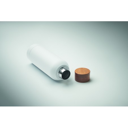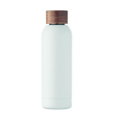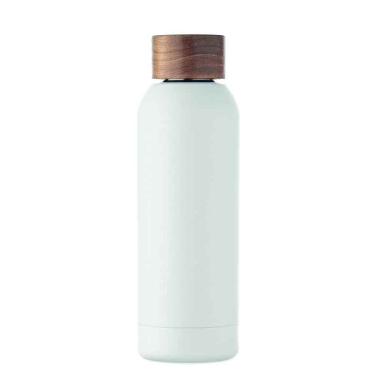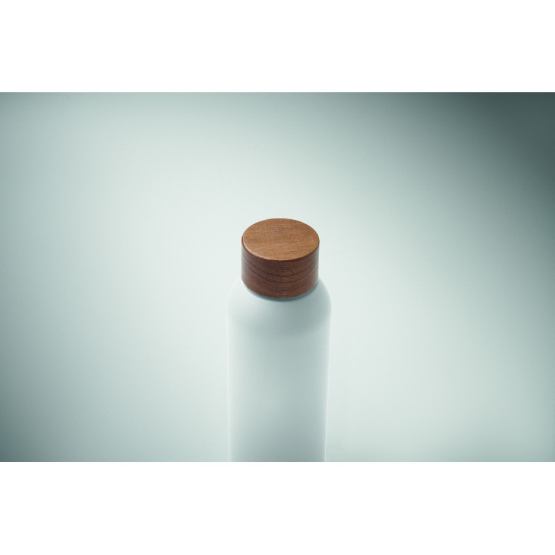 Bouteille à simple paroi en acier inoxydable recyclé à 90 % et acier inoxydable à 10 %, avec finition en caoutchouc et couvercle en bois d'acacia. Anti fuite. Capacité : 700 ml. Comme il s'agit d'une simple paroi, un transfert de chaleur peut encore se produire.