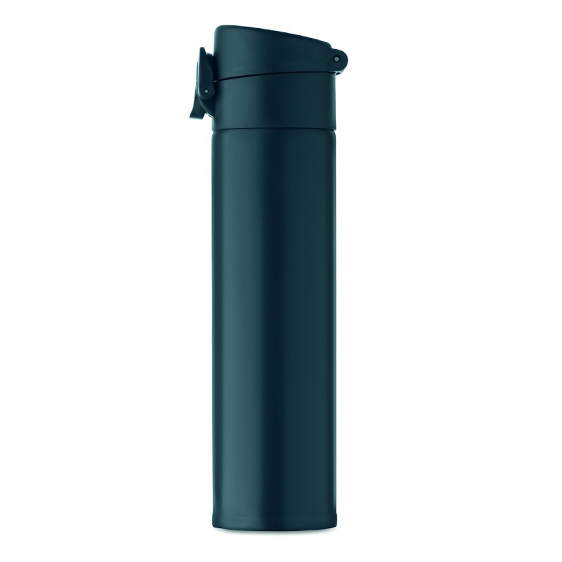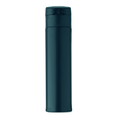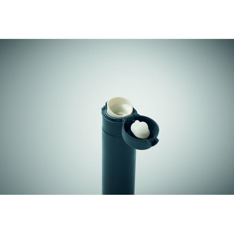 Bouteille à double paroi en acier inoxydable recyclé (90 % d'acier inoxydable recyclé et 10 % d'acier inoxydable) avec fermeture de sécurité sur le couvercle et option d'ouverture par pression. Anti fuite. Capacité 300 ml.