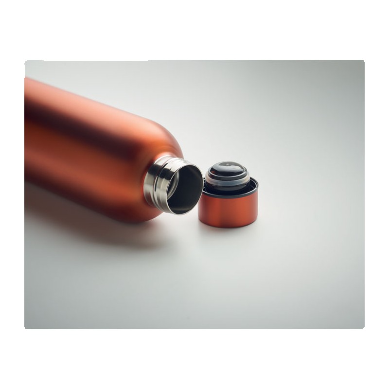 Bouteille à vide isolant à double paroi en acier inoxydable recyclé (90% inox recyclé et 10% inox). Capacité de 500 ml. Anti fuite.
