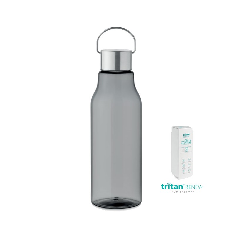 Bouteille Tritan Renew™ sans BPA avec couvercle à poignée en acier inoxydable. Anti fuite. Capacité : 800ml. Ce produit est dérivé de 50% de déchets plastiques certifié ISCC mass balance.
