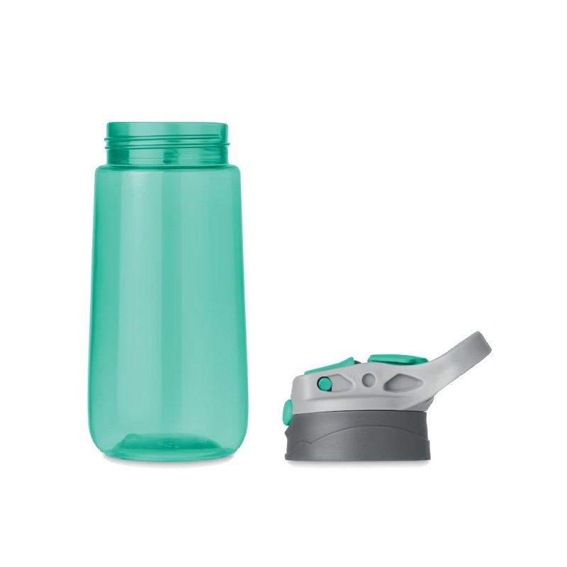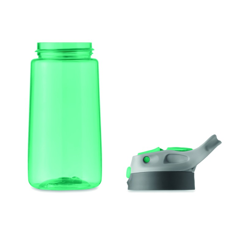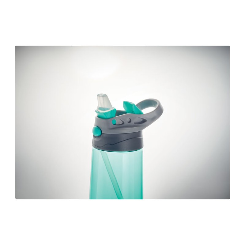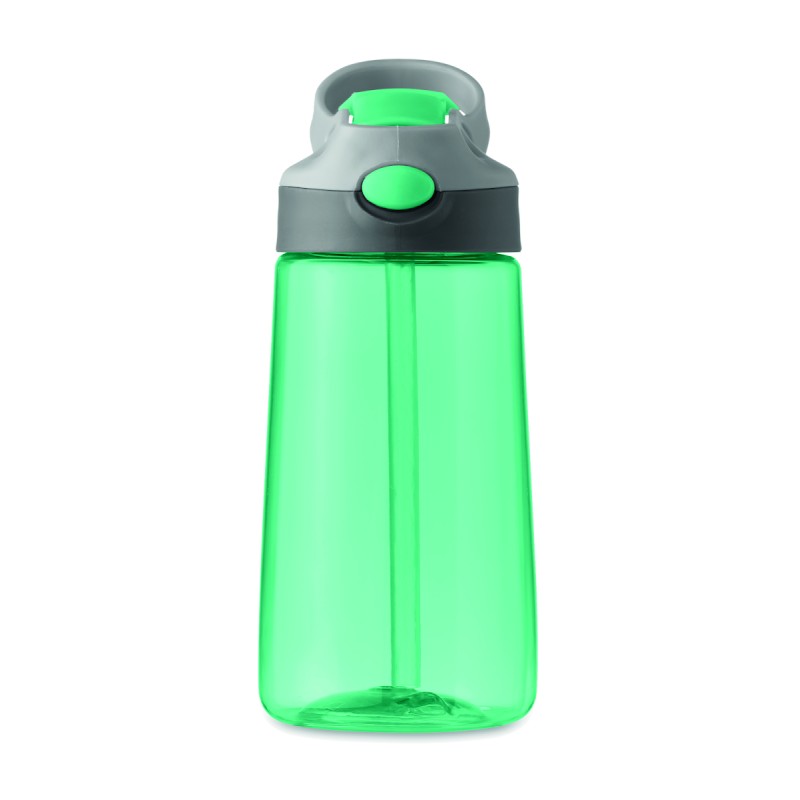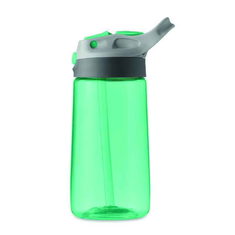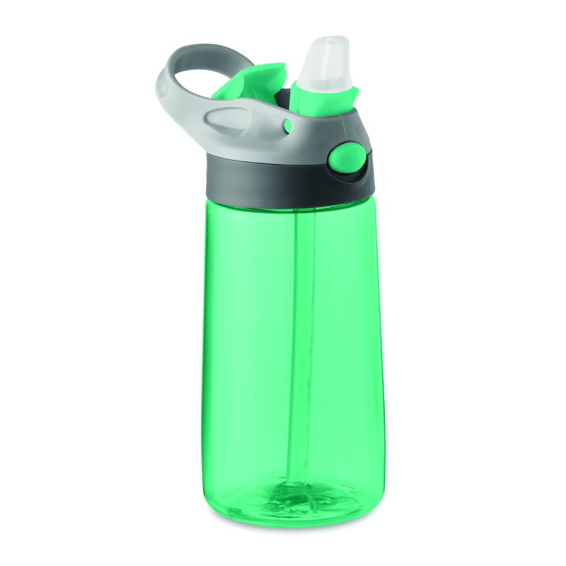 Bouteille en Tritan™ sans BPA avec un embout en silicone sur le couvercle. Contenance : 450 ml. Ne convient pas aux boissons gazeuses. Anti fuite.