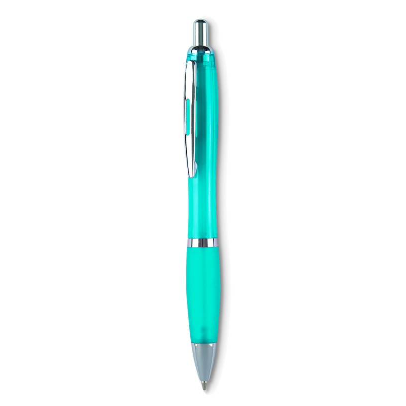 Stylo à bille à bouton poussoir en ABS recyclé avec prise en main souple. Encre noire.