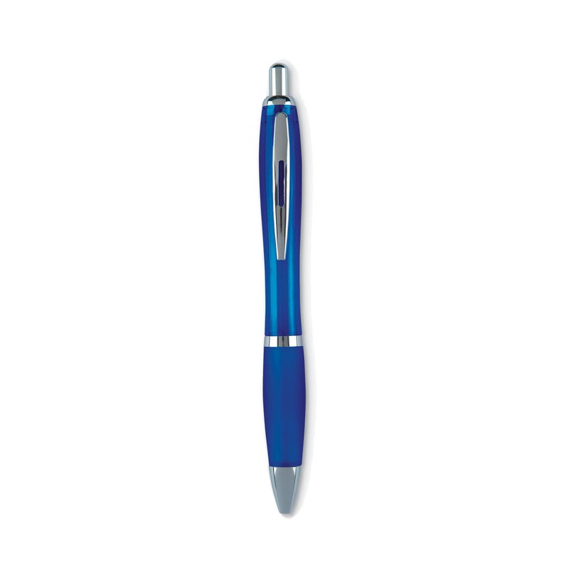 Stylo à bille à bouton poussoir en ABS recyclé avec prise en main souple. Encre noire.