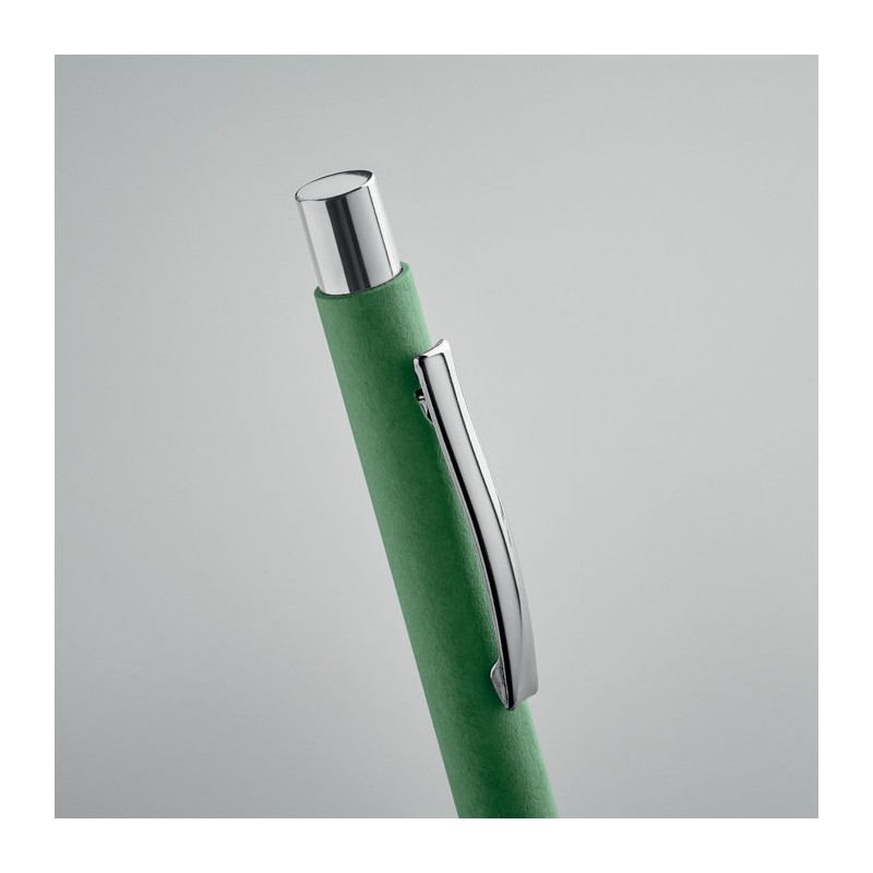 Stylo à bille à bouton poussoir en papier recyclé (50%)et clip en métal. Encre bleue. FSC®-certified | FSC RECYCLED, P9, FSC-C213206