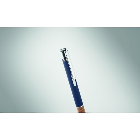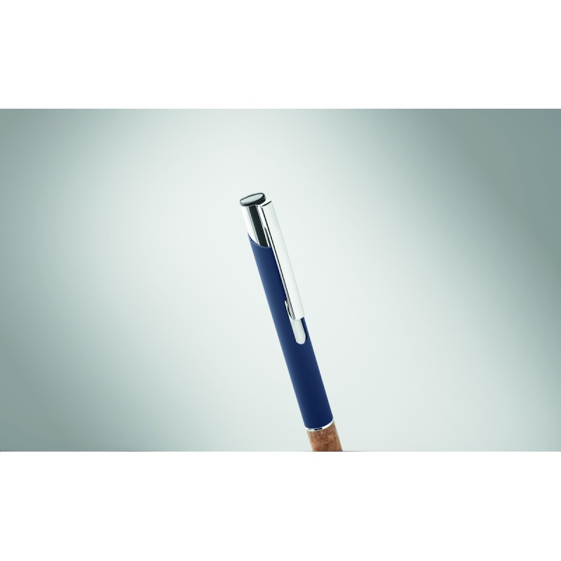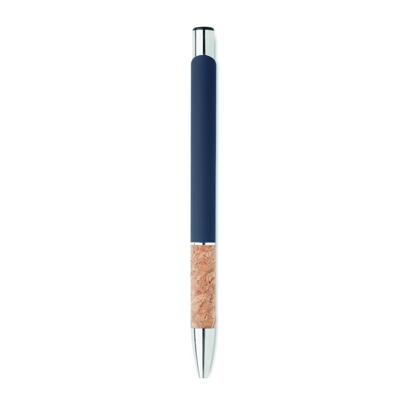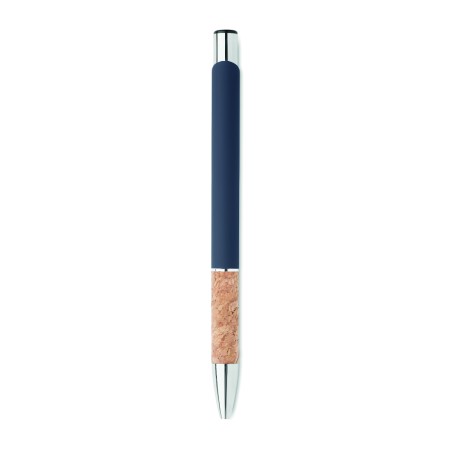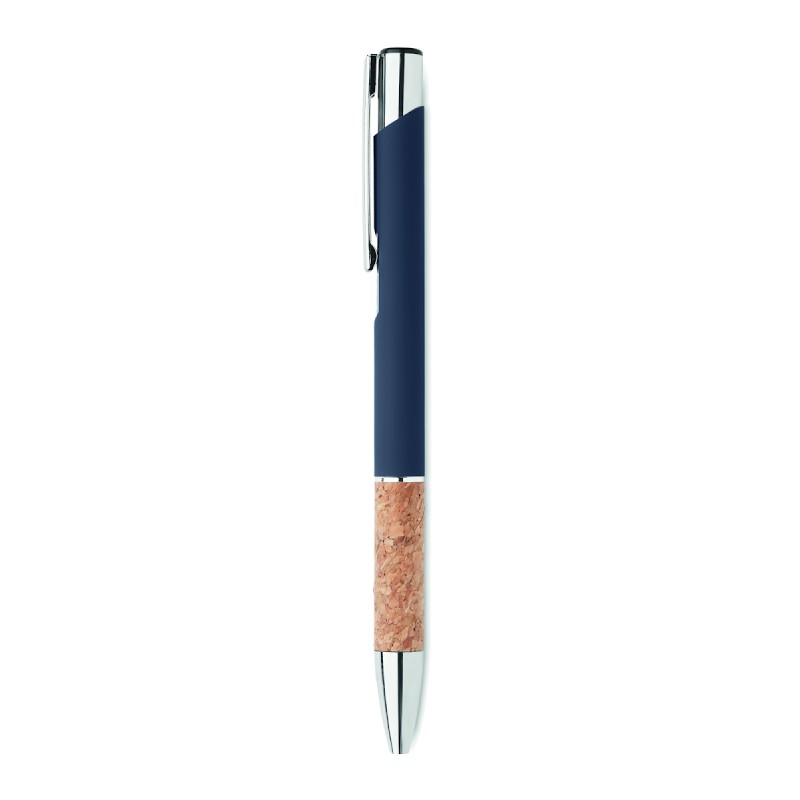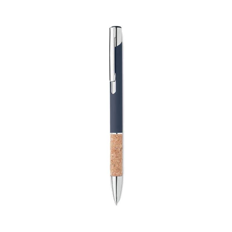 Stylo à bouton poussoir en aluminium avec grip en liège. Encre bleue.