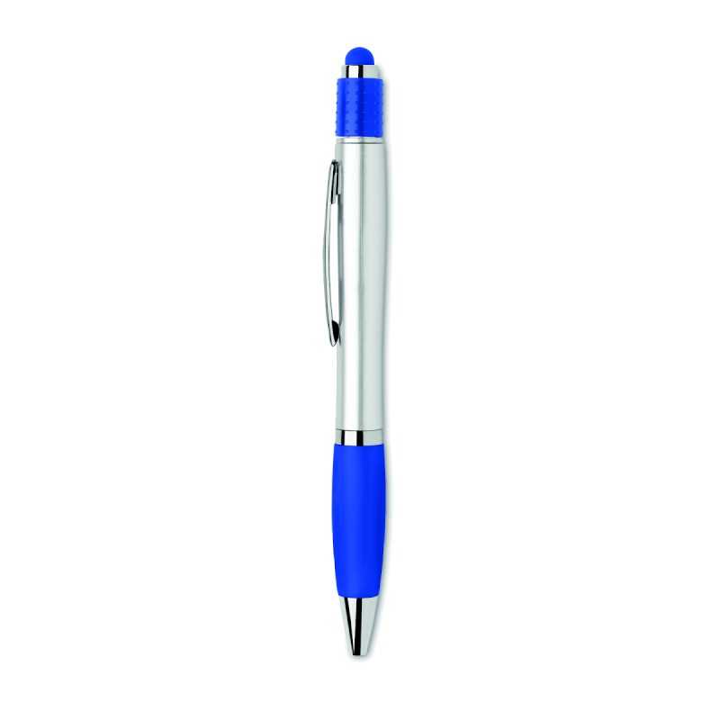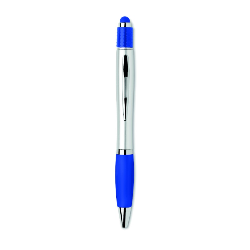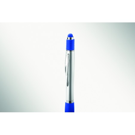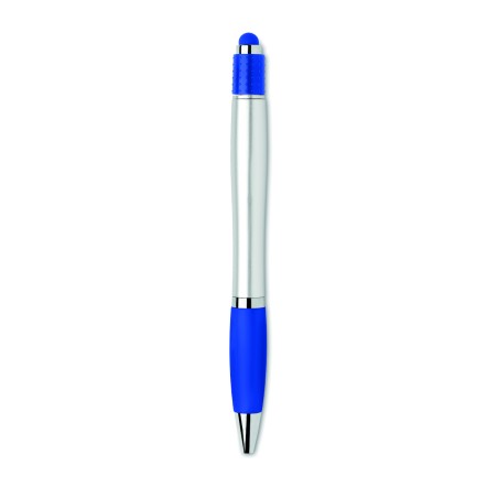 Stylo bille twist action stylus en ABS recyclé, fonction antistress spinner. Encre bleue.
