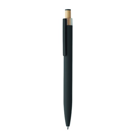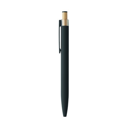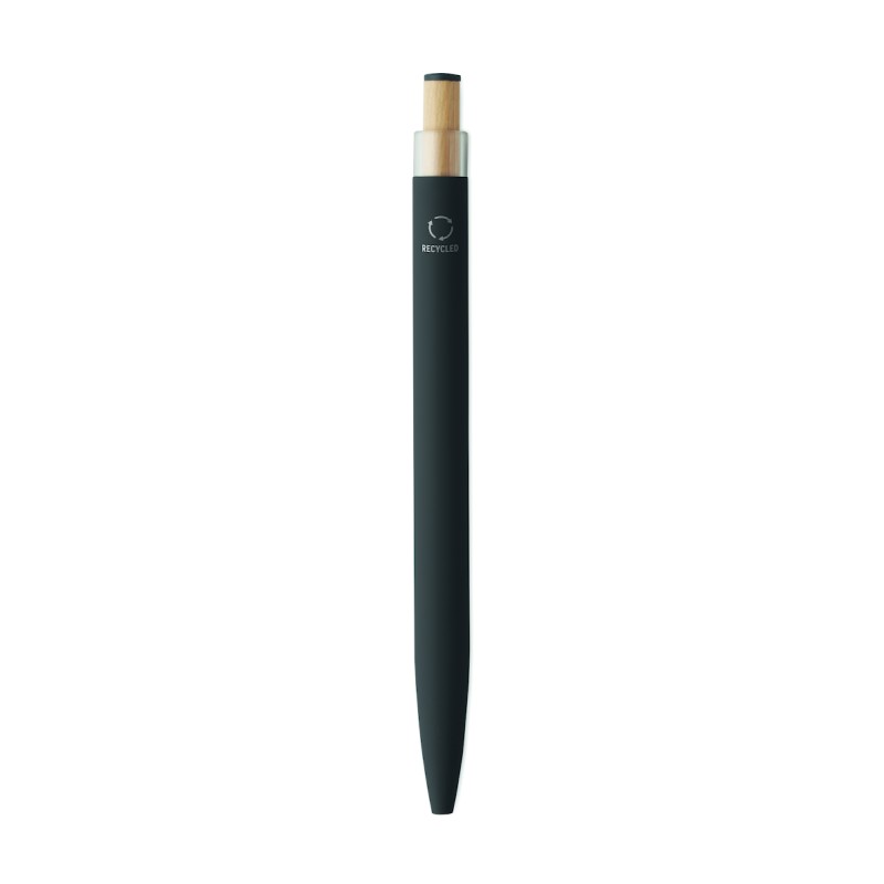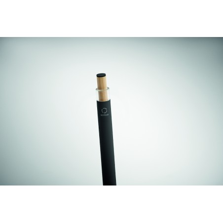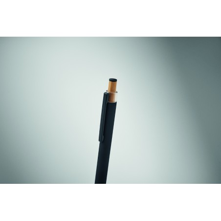 Stylo à bille en aluminium recyclé avec bouton poussoir en bambou de couleur assortie et clip en métal assorti. Encre bleue.