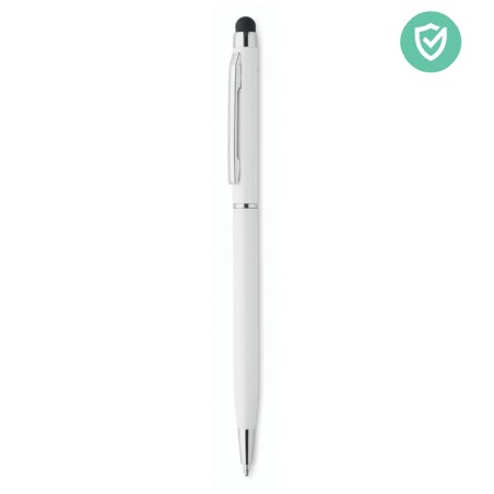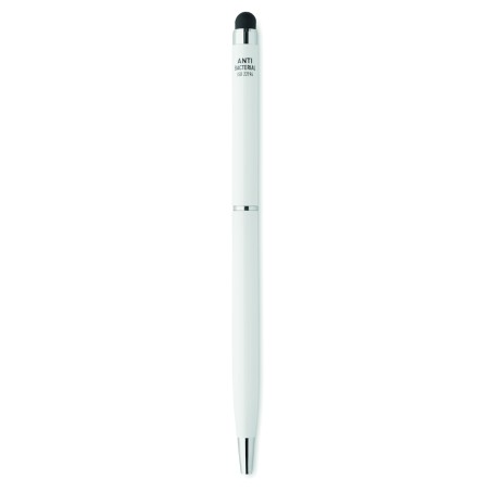 Stylo à bille twist en aluminium avec revêtement antibactérien et clip chromé brillant. ISO 22196. Encre bleue.