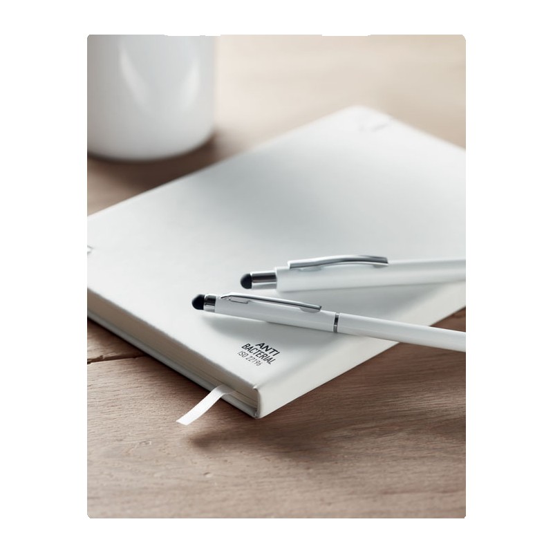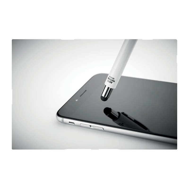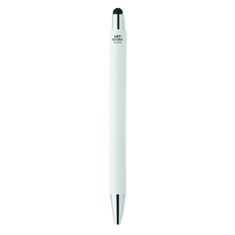 Stylo et stylet à bouton-poussoir en ABS avec revêtement antibactérien. ISO 22196. Encre bleue.