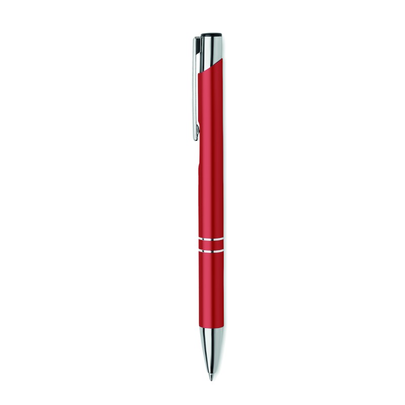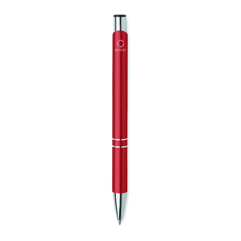 Stylo à bille à bouton poussoir en aluminium recyclé. Encre bleue.