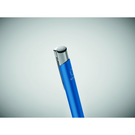 Stylo à bille à bouton poussoir en aluminium recyclé. Encre bleue.