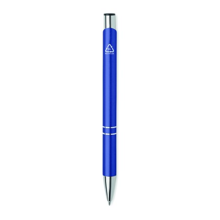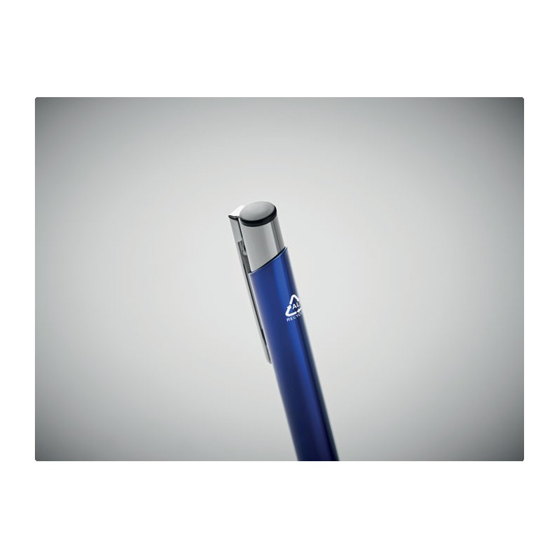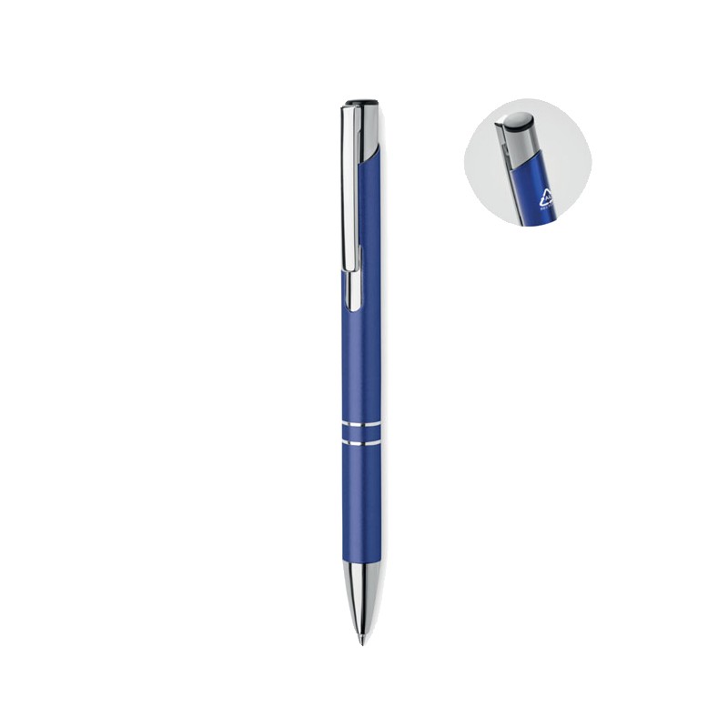 Stylo à bille à bouton poussoir en aluminium recyclé. Encre bleue.
