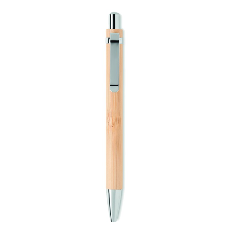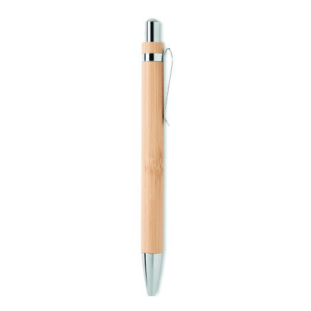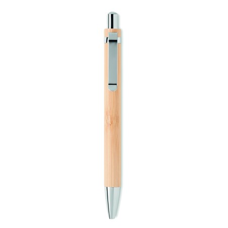 Stylo sans encre à bouton-poussoir de longue durée avec corps en bambou et accessoires chromés brillants. Le stylo écrit avec la pointe en graphite. Le bambou étant un produit naturel, il peut y avoir de légères variations de couleur et de taille d'un article à l'autre, ce qui peut affecter le résultat final de la décoration. FSC®-certified | FSC 100%, N5.7, FSC-C213206