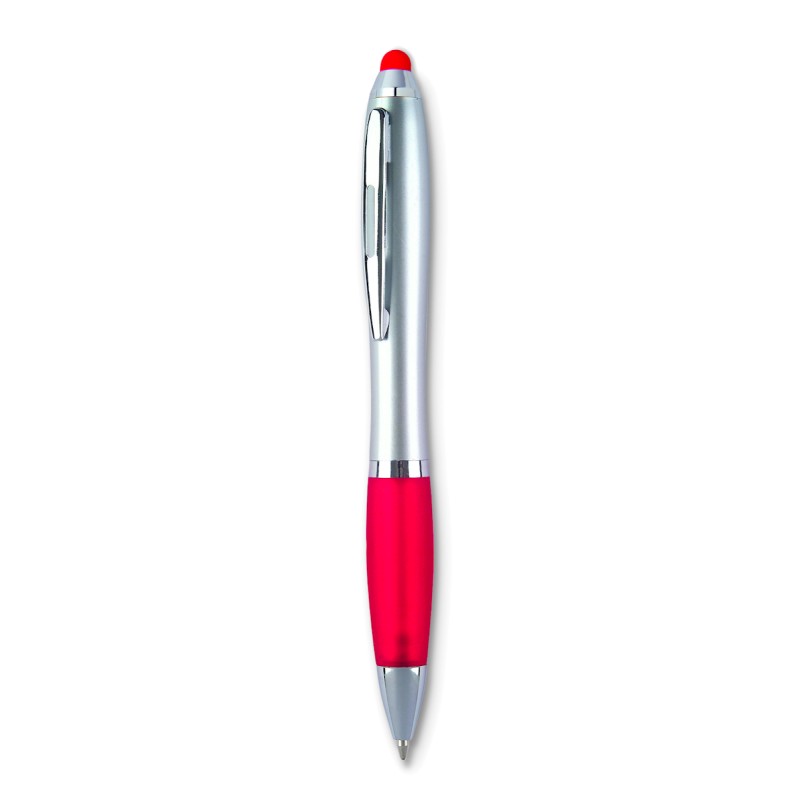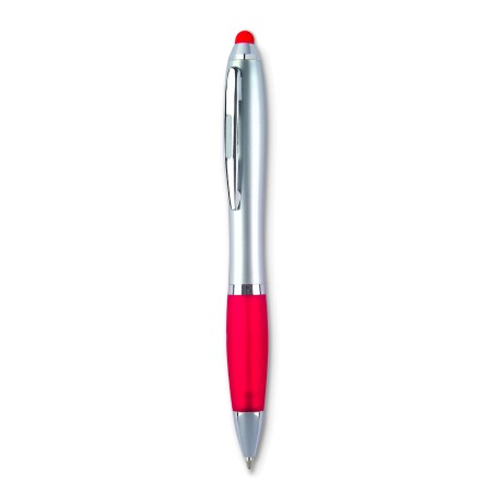 Stylo bille twist en ABS avec grip souple et embout assorti. Encre bleue.