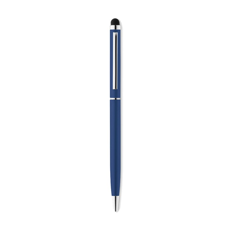 Stylo bille twist en aluminium recyclé avec clip chromé brillant et embout sensible. Encre bleue.