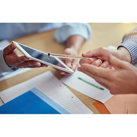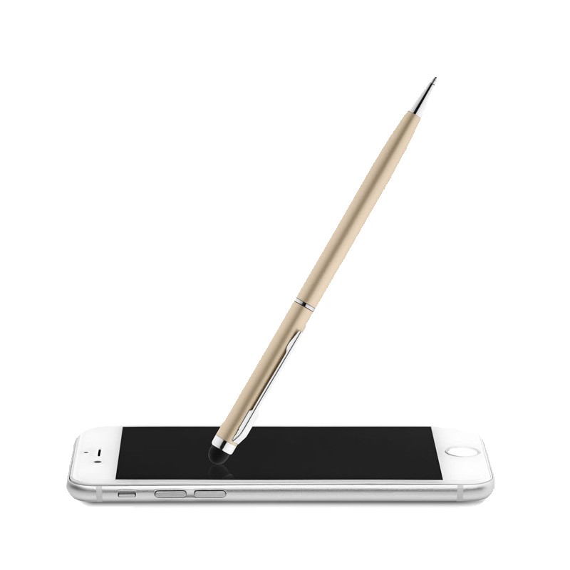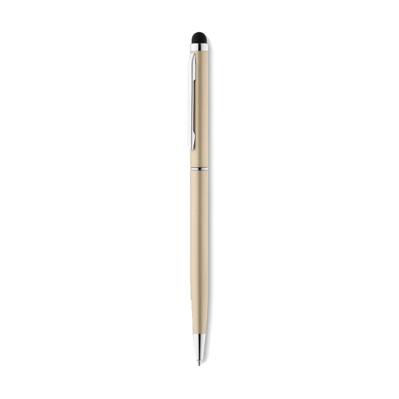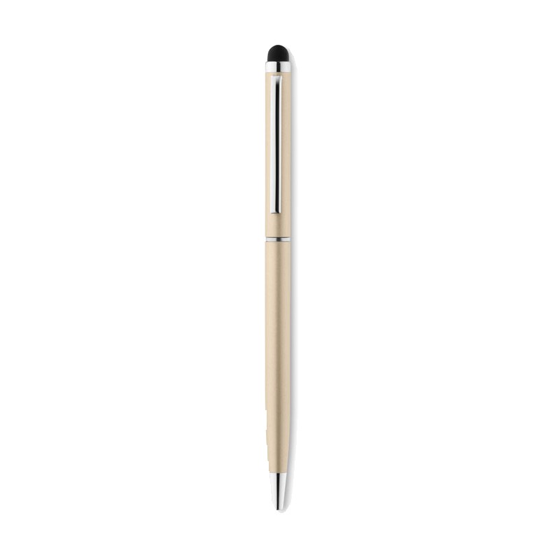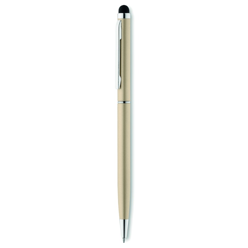 Stylo bille twist en aluminium recyclé avec clip chromé brillant et embout sensible. Encre bleue.