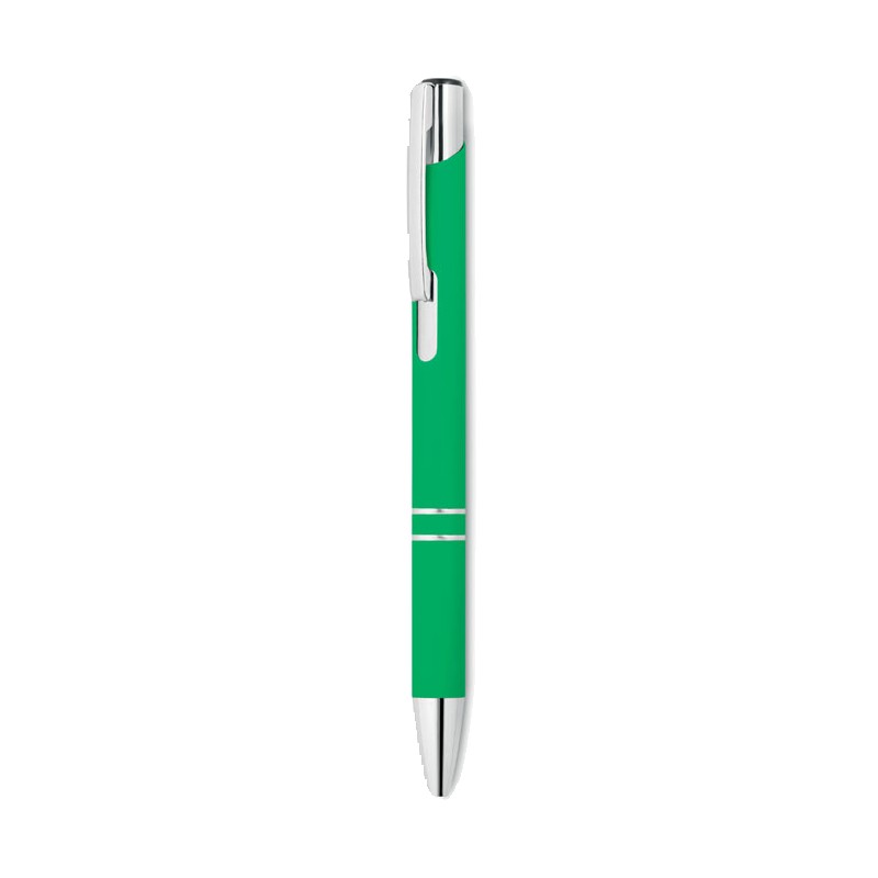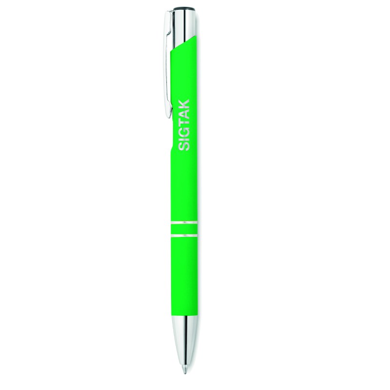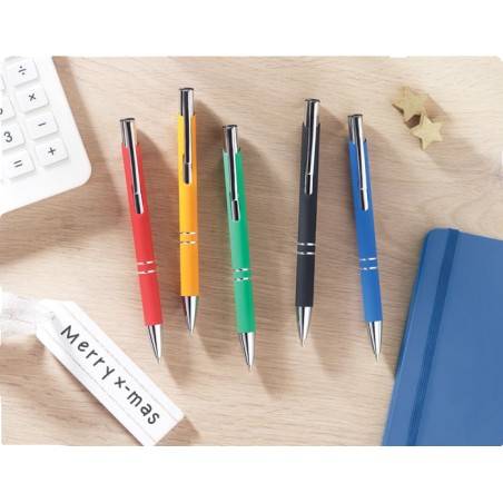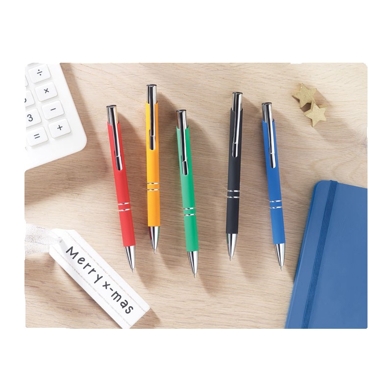 Stylo bille poussoir finition caoutchouc. Encre bleue.