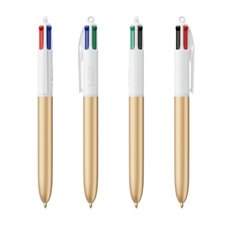Découvrez la nouvelle version plus glamour que jamais du BIC 4 couleurs. Maintenant, ce stylo emblématique s´habille en 5 spectaculaires couleurs givrées dans sa version BIC® 4 couleurs Glacé. Notre emblématique BIC® 4 Couleurs® devient plus durable, avec désormais 13 % de plastique en moins dans la partie supérieure ! De juin 2023 à juin 2024, veuillez retenir que vous pouvez recevoir votre ligne de commande avec le clip standard ou le nouveau clip contenant moins de plastique.