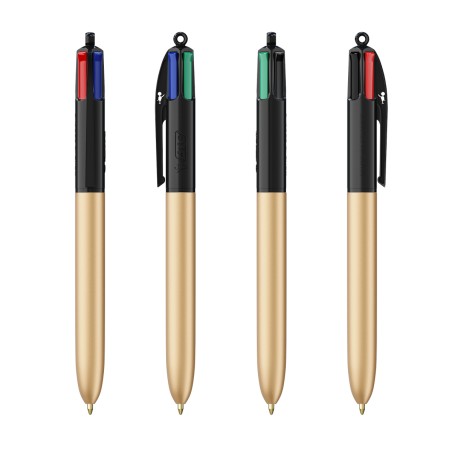 Découvrez nos couleurs BIC® 4 les plus récentes et les plus glamour! Maintenant, ce stylo emblématique est habillé pour impressionner en 5 couleurs brillantes éblouissantes dans sa version glacée Bic® 4 Colors. Notre emblématique BIC® 4 Couleurs® devient plus durable, avec désormais 13 % de plastique en moins dans la partie supérieure ! De juin 2023 à juin 2024, veuillez retenir que vous pouvez recevoir votre ligne de commande avec le clip standard ou le nouveau clip contenant moins de plastique.
