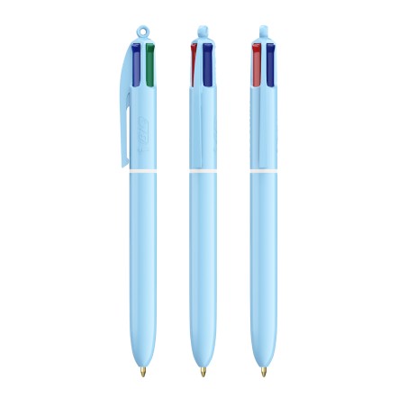 Découvrez le nouveau BIC® 4 Couleurs® Pastel ! Soyez créatifs avec les nouvelles couleurs pastel - pour des designs uniques avec un langage visuel de rêve ! Nos stylos à bille BIC® 4 Couleurs® ont une longueur d'écriture moyenne de 8 000 m (tests SGS - longueur d'écriture moyenne pour les encres bleue, noire, rouge et verte). Notre iconique BIC® 4 Colours® devient de plus en plus durable, avec désormais 13% de plastique en moins dans la partie supérieure !
