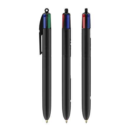 Simple, fiable, ingénieux. Quatre couleurs d’encre différentes sur un seul stylobille: bleu, noir, rouge, vert. Un stylo emblématique toujours à la mode ! Marquez-le tout en couleur avec la qualité du britePixTM Digital. Notre emblématique BIC® 4 Couleurs® devient plus durable, avec désormais 13 % de plastique en moins dans la partie supérieure ! De juin 2023 à juin 2024, veuillez retenir que vous pouvez recevoir votre ligne de commande avec le clip standard ou le nouveau clip contenant moins de plastique.