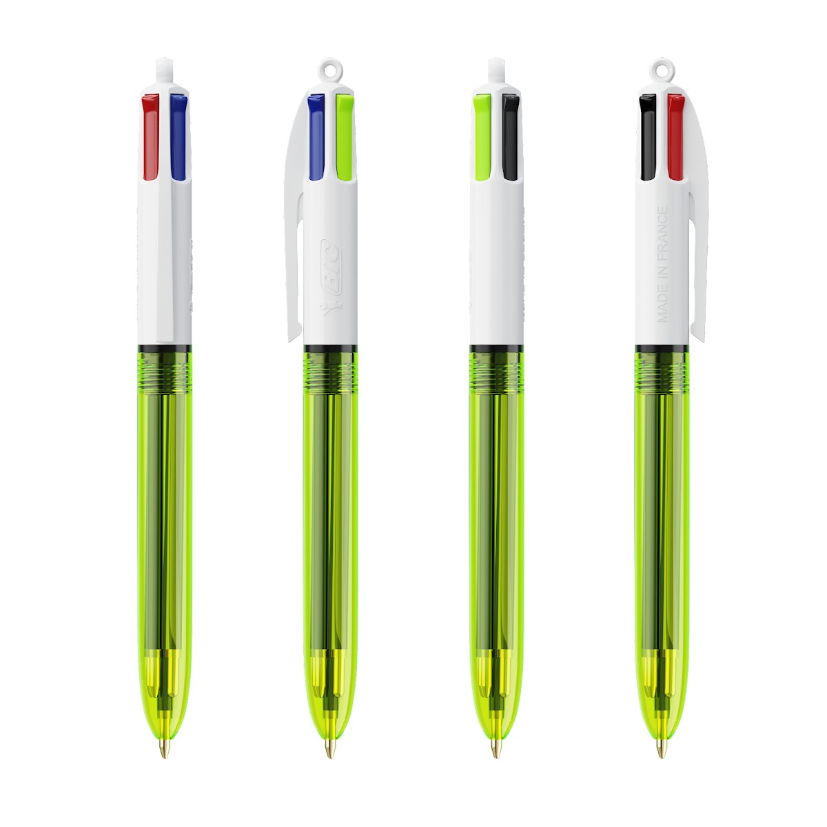 La famille emblématique BIC® 4 Couleurs s'enrichit d'une couleur fluo pour offrir encore plus de prestations ! Trois encres de couleurs standards (bleu, noir et rouge), combinées avec un marqueur fin d'une couleur jaune brillante. Notre emblématique BIC® 4 Couleurs® devient plus durable, avec désormais 13 % de plastique en moins dans la partie supérieure ! De juin 2023 à juin 2024, veuillez retenir que vous pouvez recevoir votre ligne de commande avec le clip standard ou le nouveau clip contenant moins de plastique.