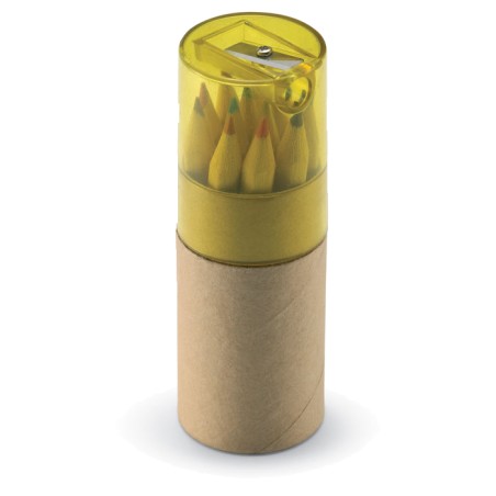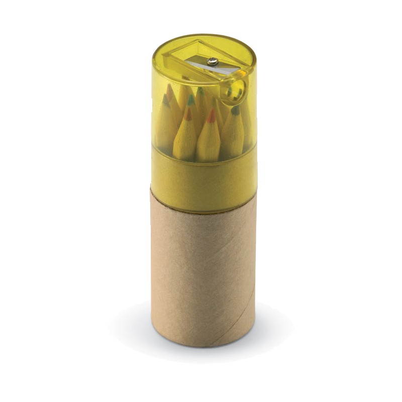 12 crayons de couleur en papier recyclé. Taille-crayon inclus dans le couvercle transparent.